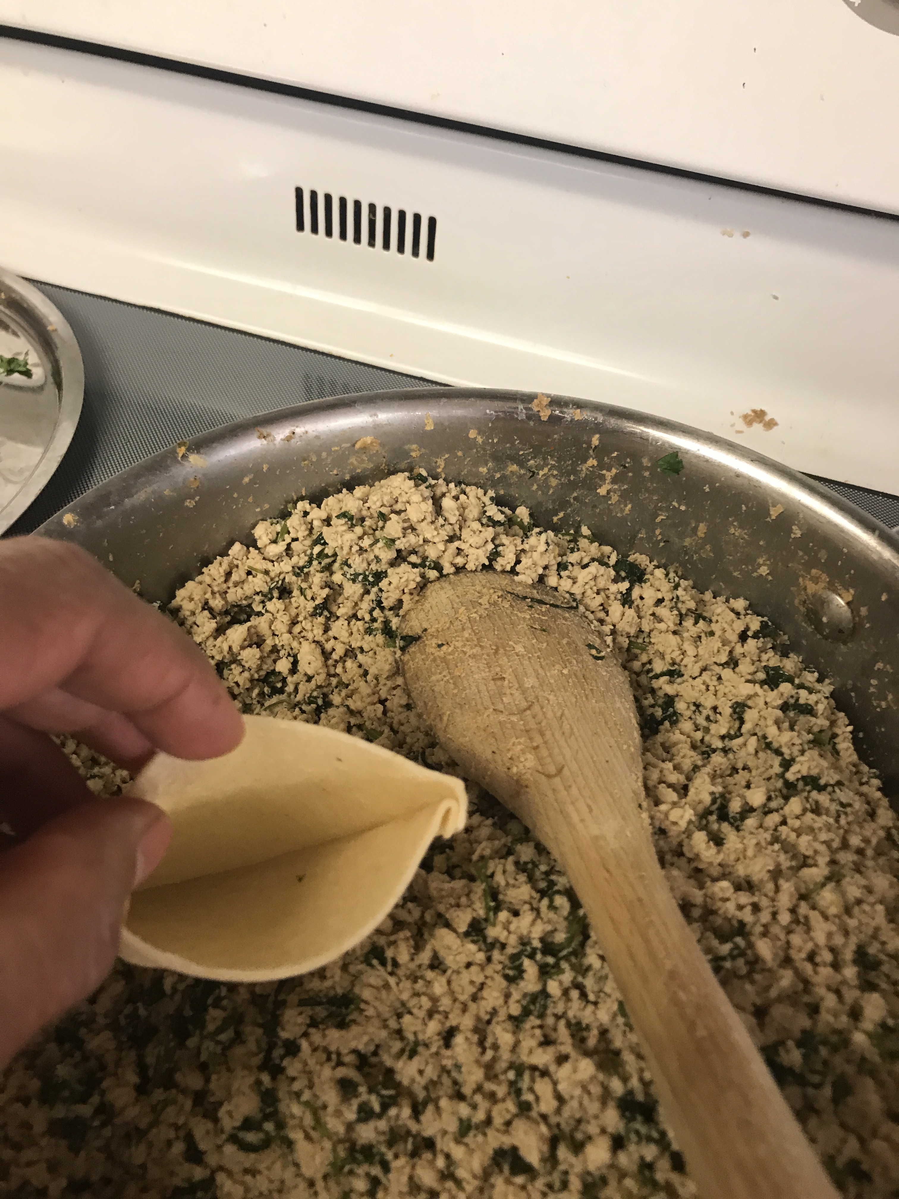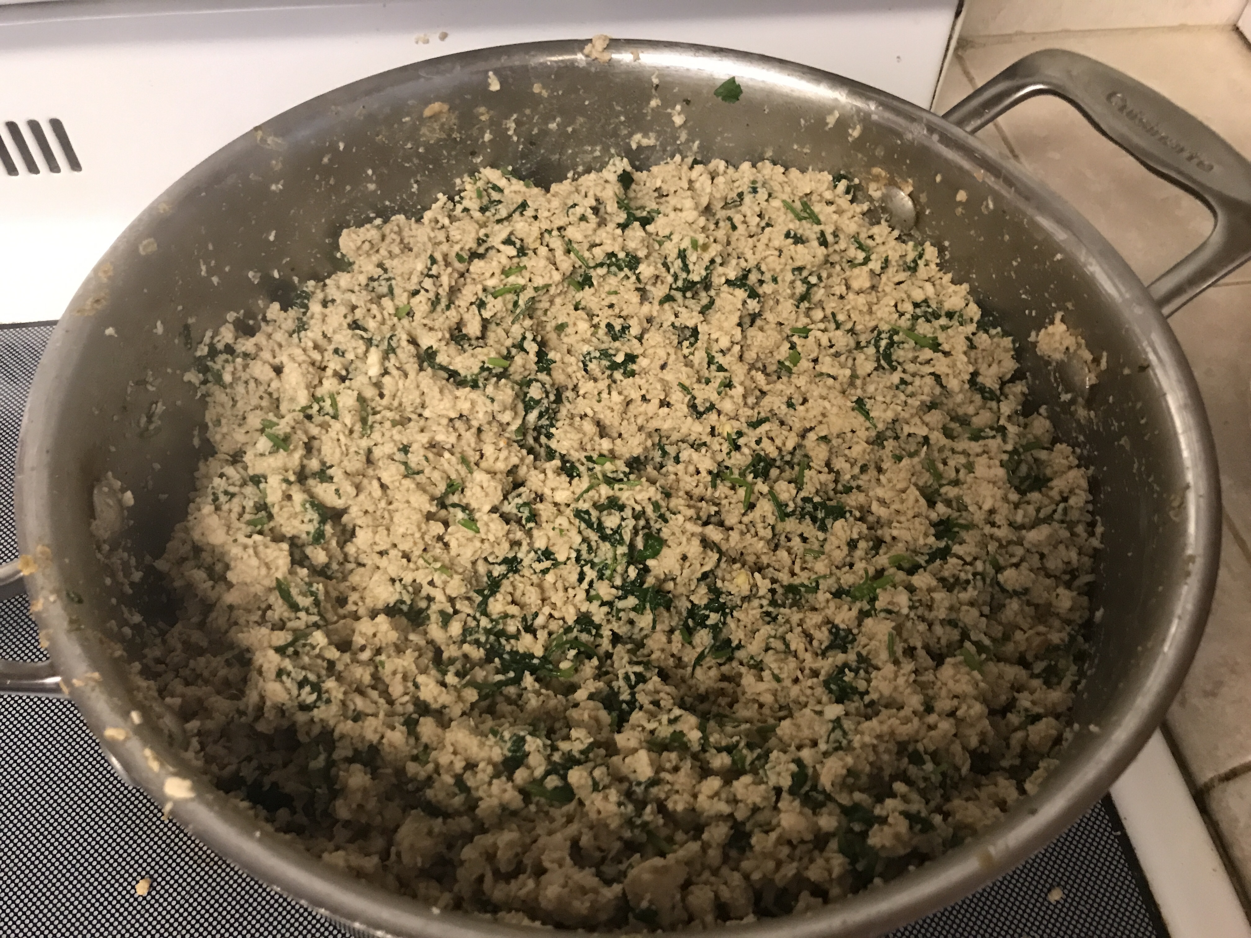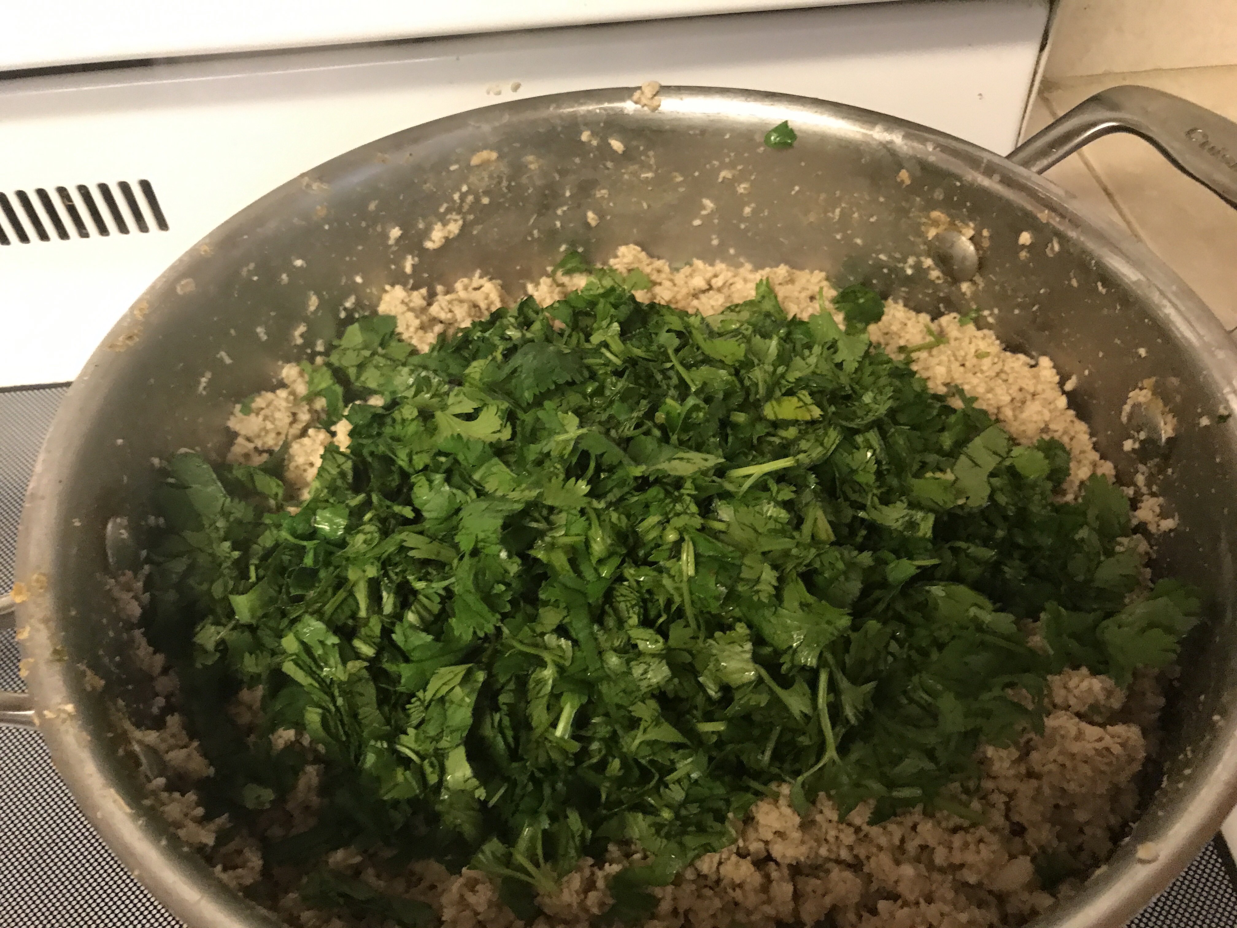 Lastly, add the chopped cilantro and the optional chopped onion and 2 tbsp oil or butter.
